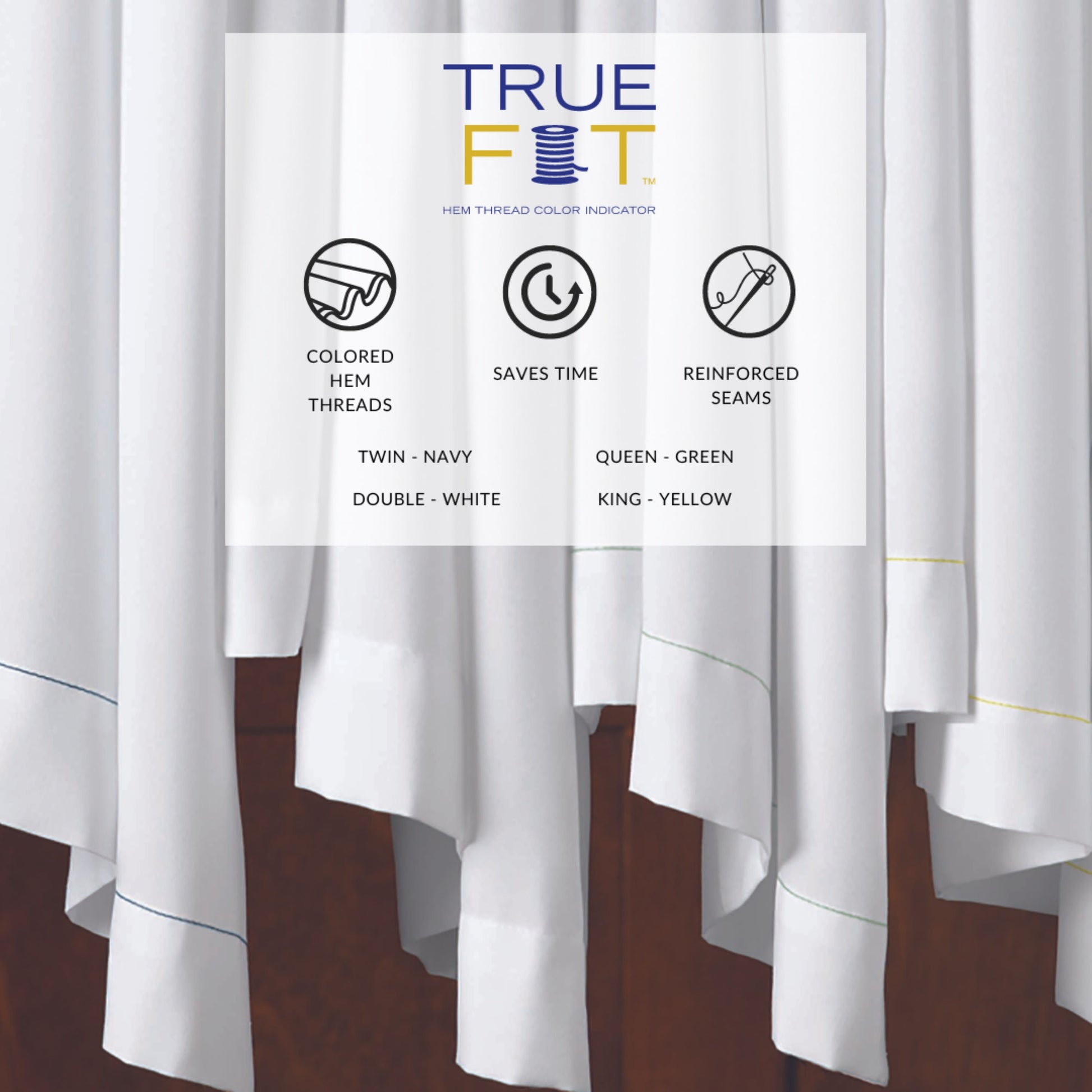 - TrueFit™ Color Indicators for Size Identification: Twin- Navy, Full-White, Queen- Green, King-Gold